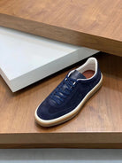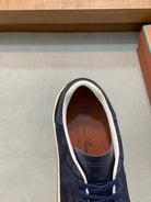 Loro Piana Tennis Walk Sneakers Suede Calf Split Navy Blue
