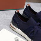 LP lady Flexy Walk Sneaker Navy Blue Wool and Calfskin 310455