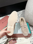 LP Summer Charms Walk Loafers In Light Brown Beige Suede With Rabbit Fur Lining 985651