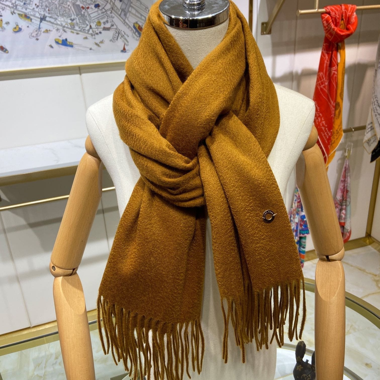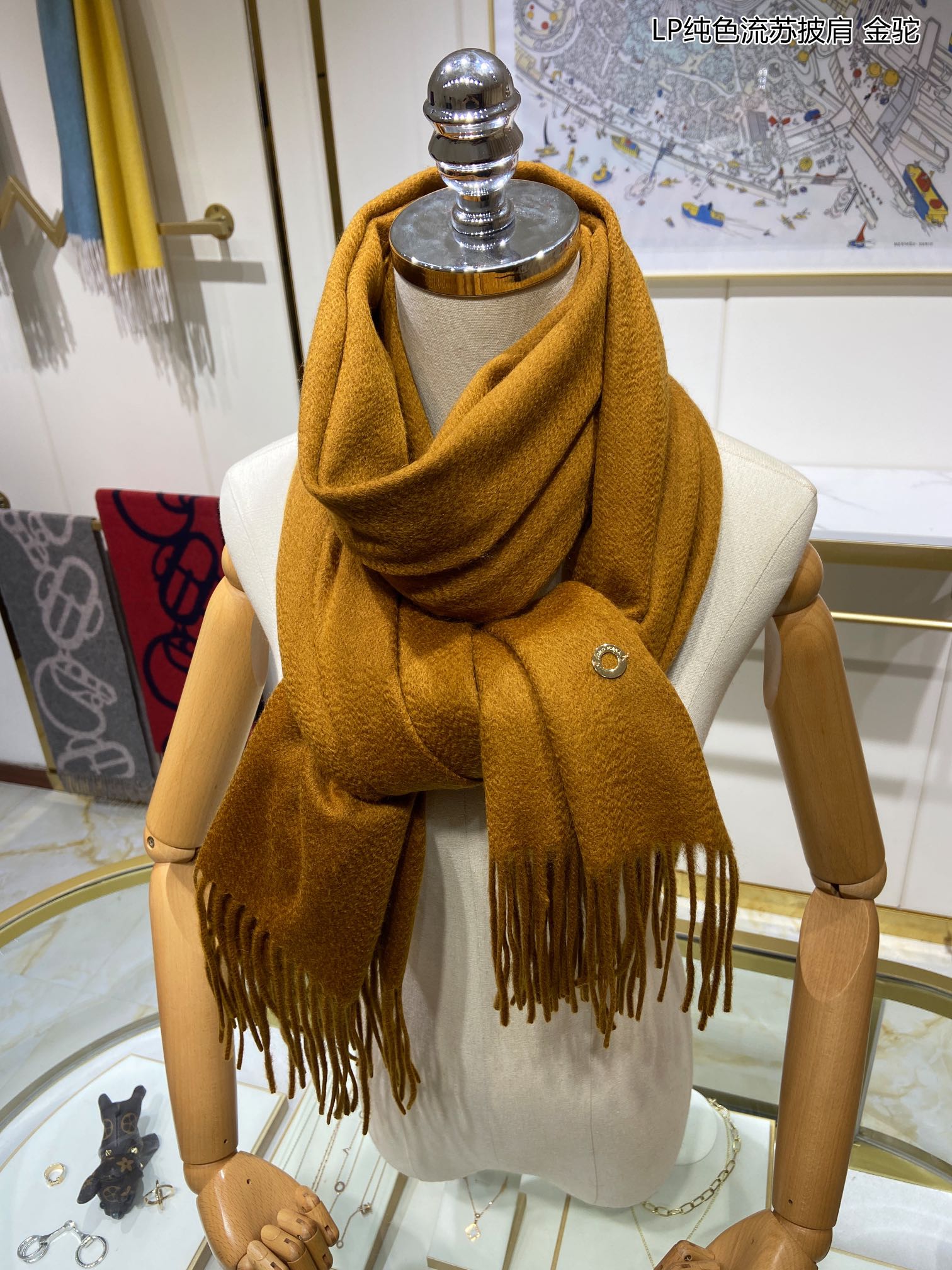 LP Grande Unita Scarf 200 CM In Ochre Yellow Cashmere 645523