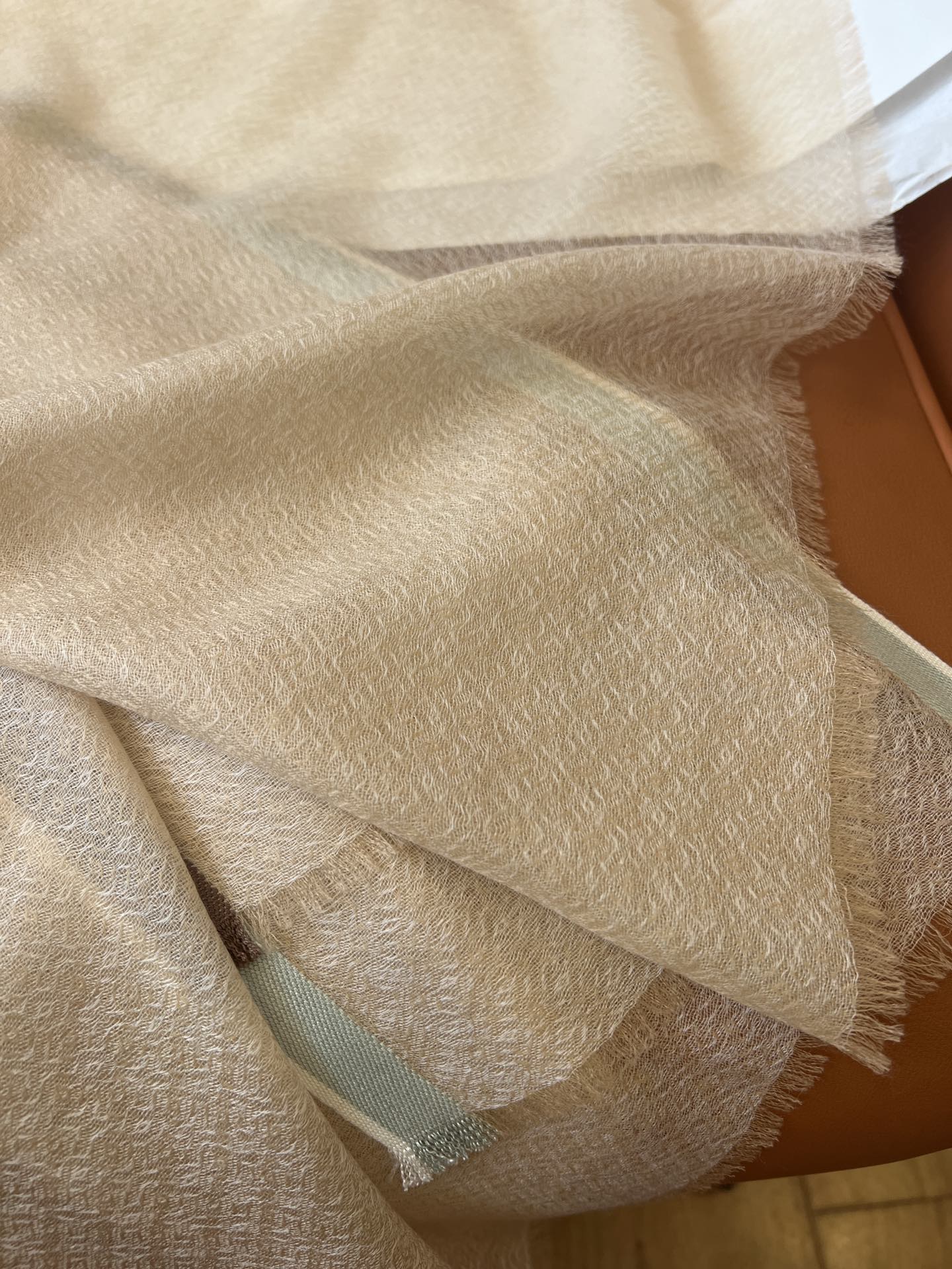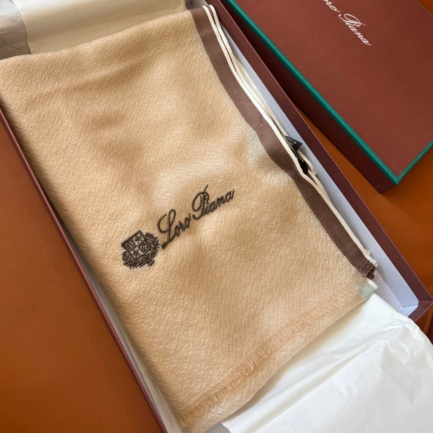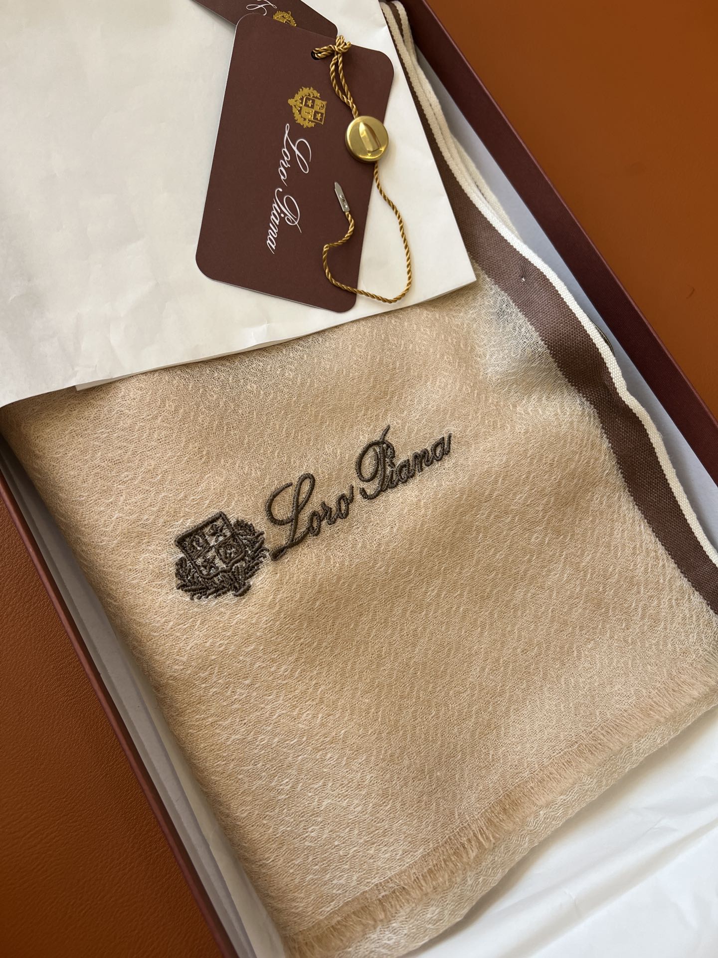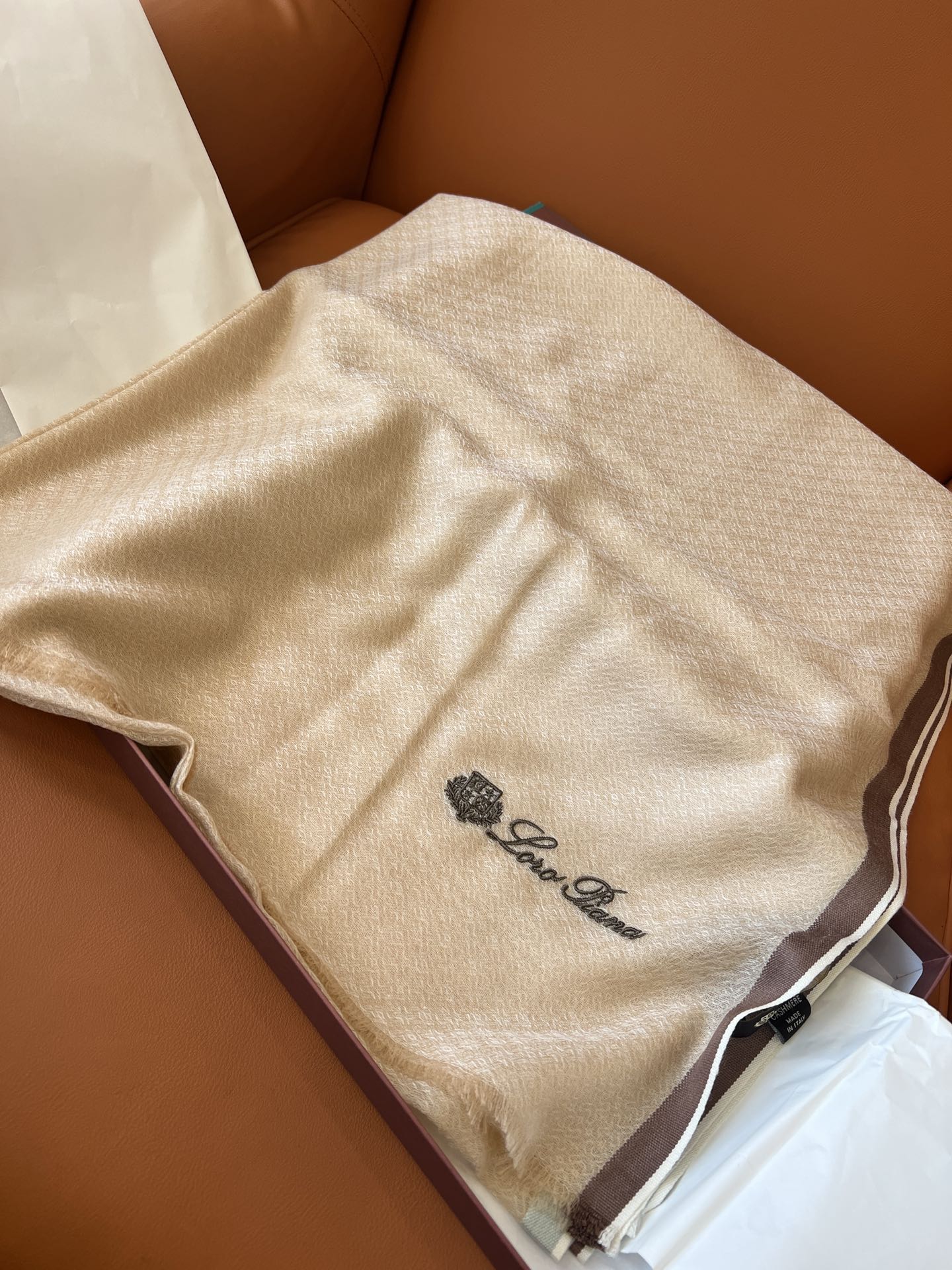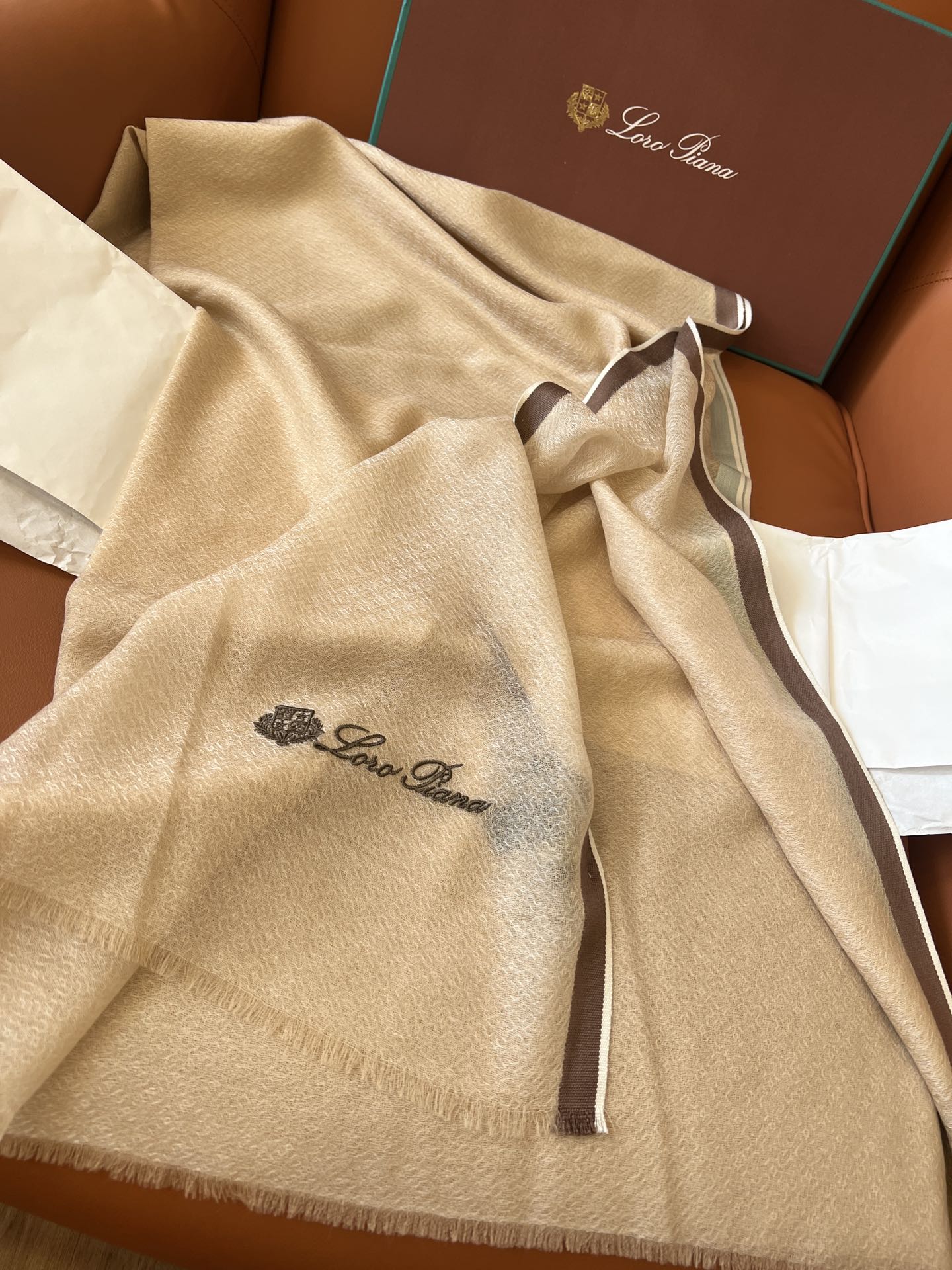 LP Quadrata Rainbow Scarf 210 CM In Camel Beige Thin Silk Woven With Wool 428594