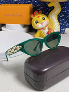 CAT EYE SUNGLASSES 576882 IN GREEN AND GOLD ACETATE