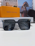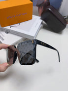 SQUARE SUNGLASS 581366 IN BLACK ACETATE MONOGRAM MASK ON LENS
