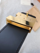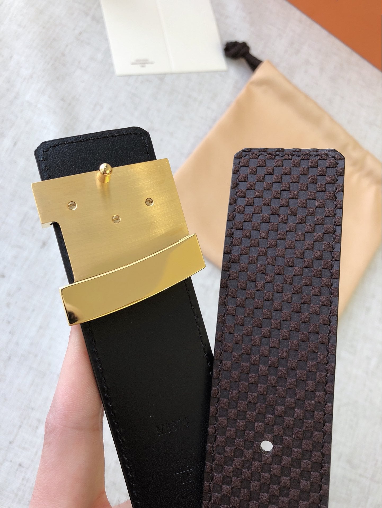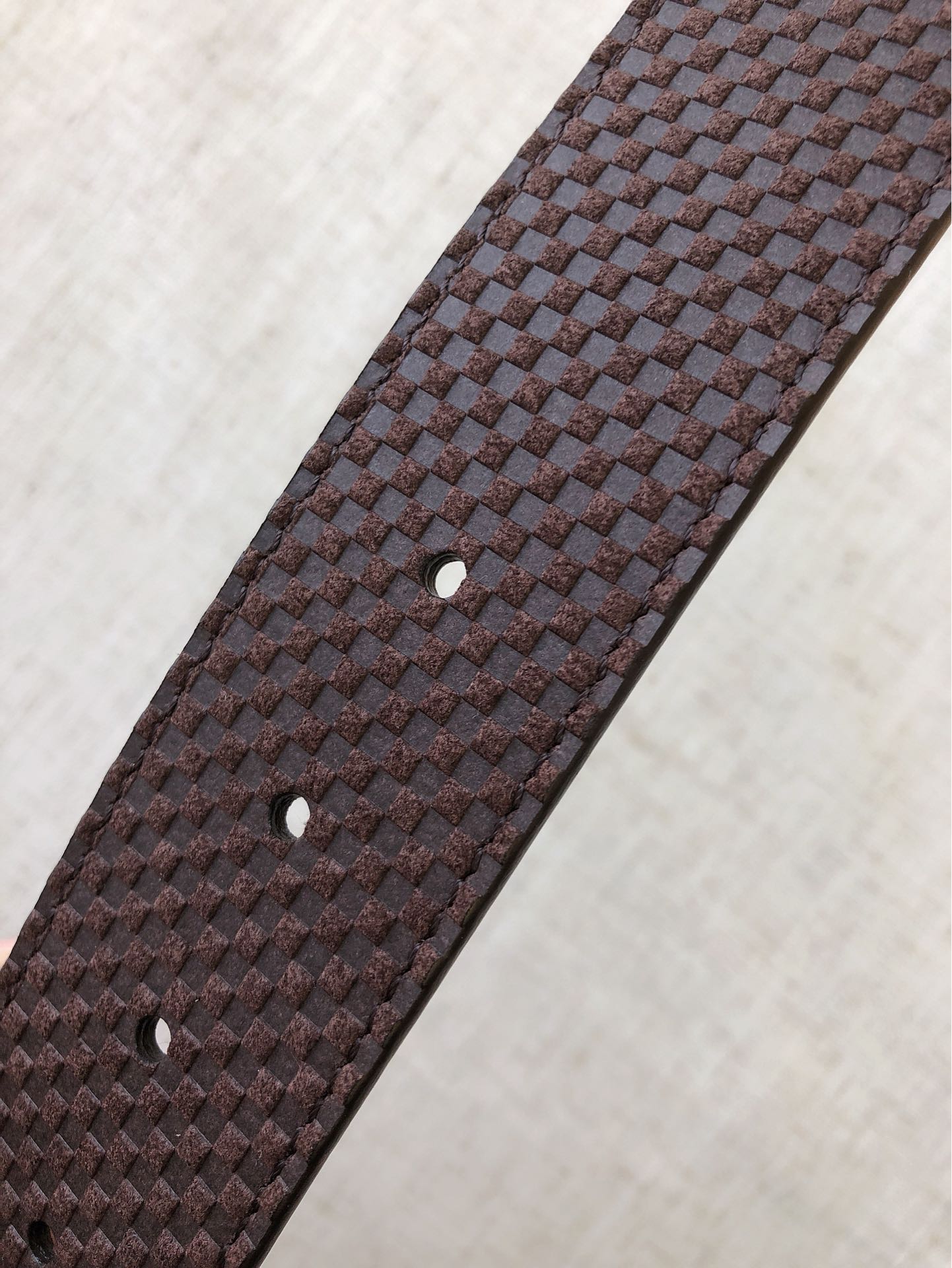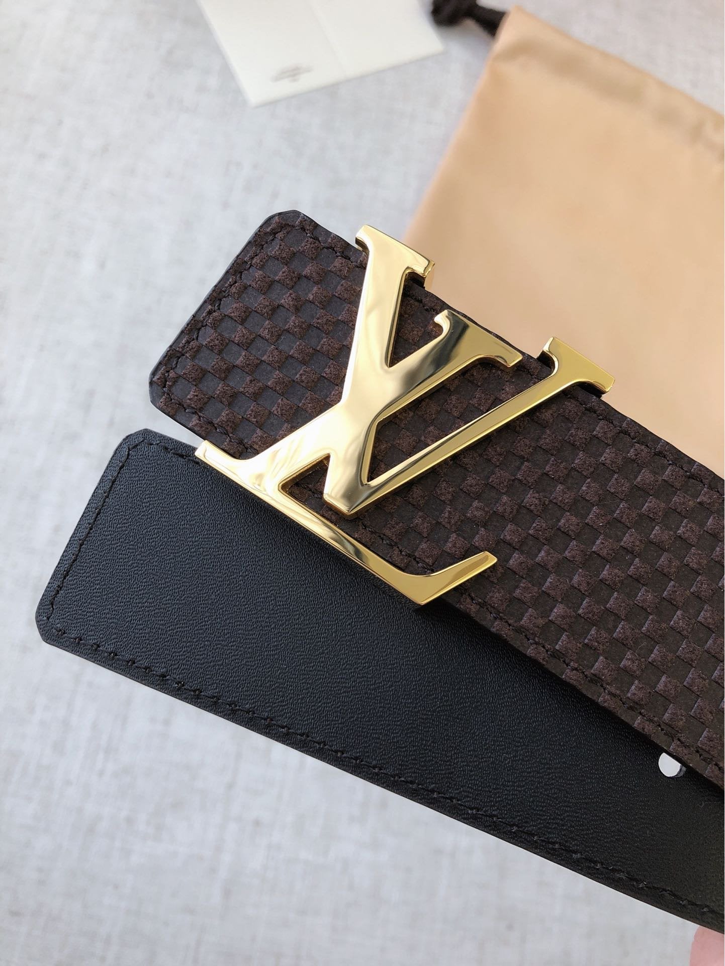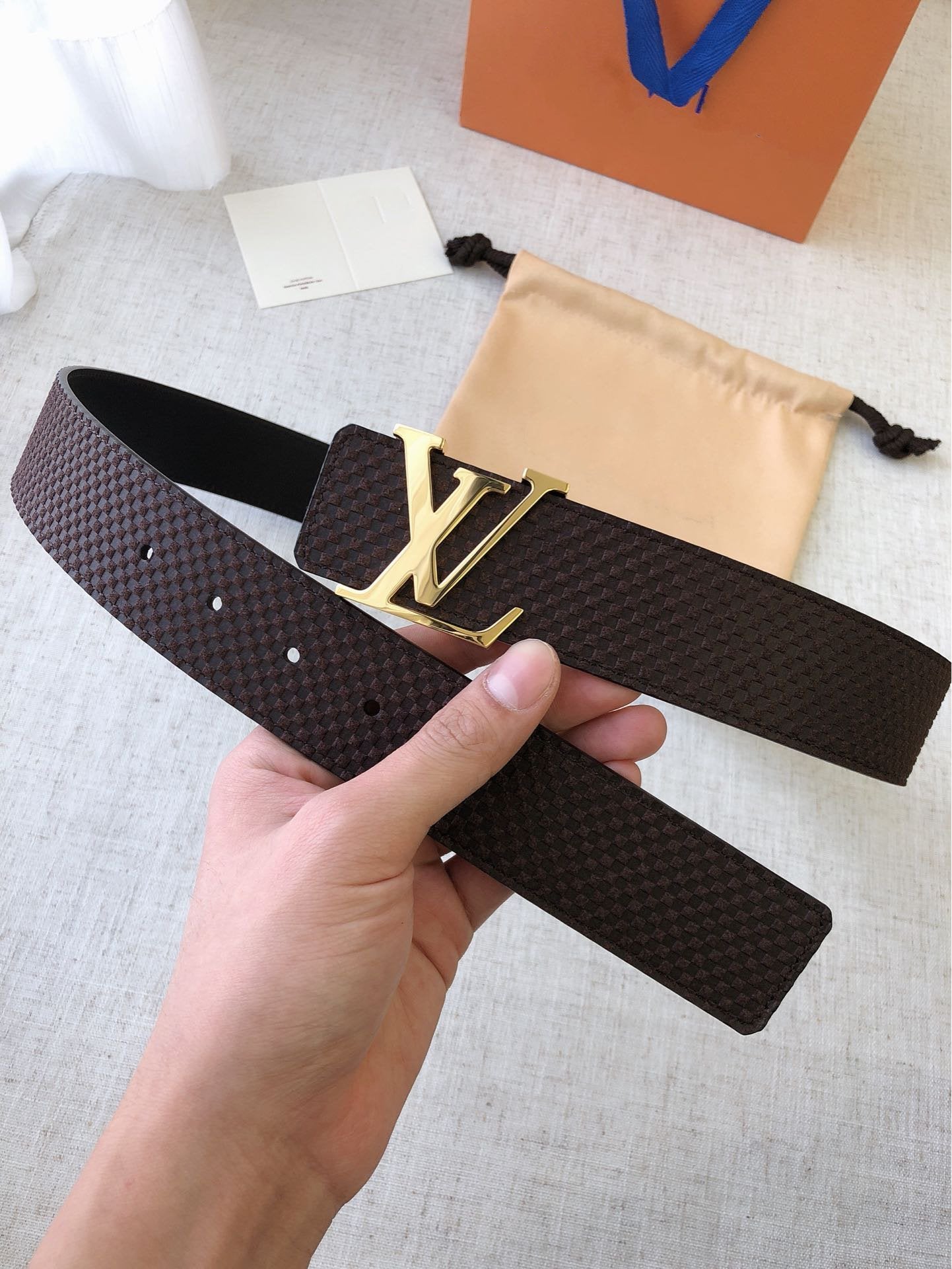 LV 40MM BELT GOLD BUCKLE EMBOSSED BROWN BLACK LEATHER