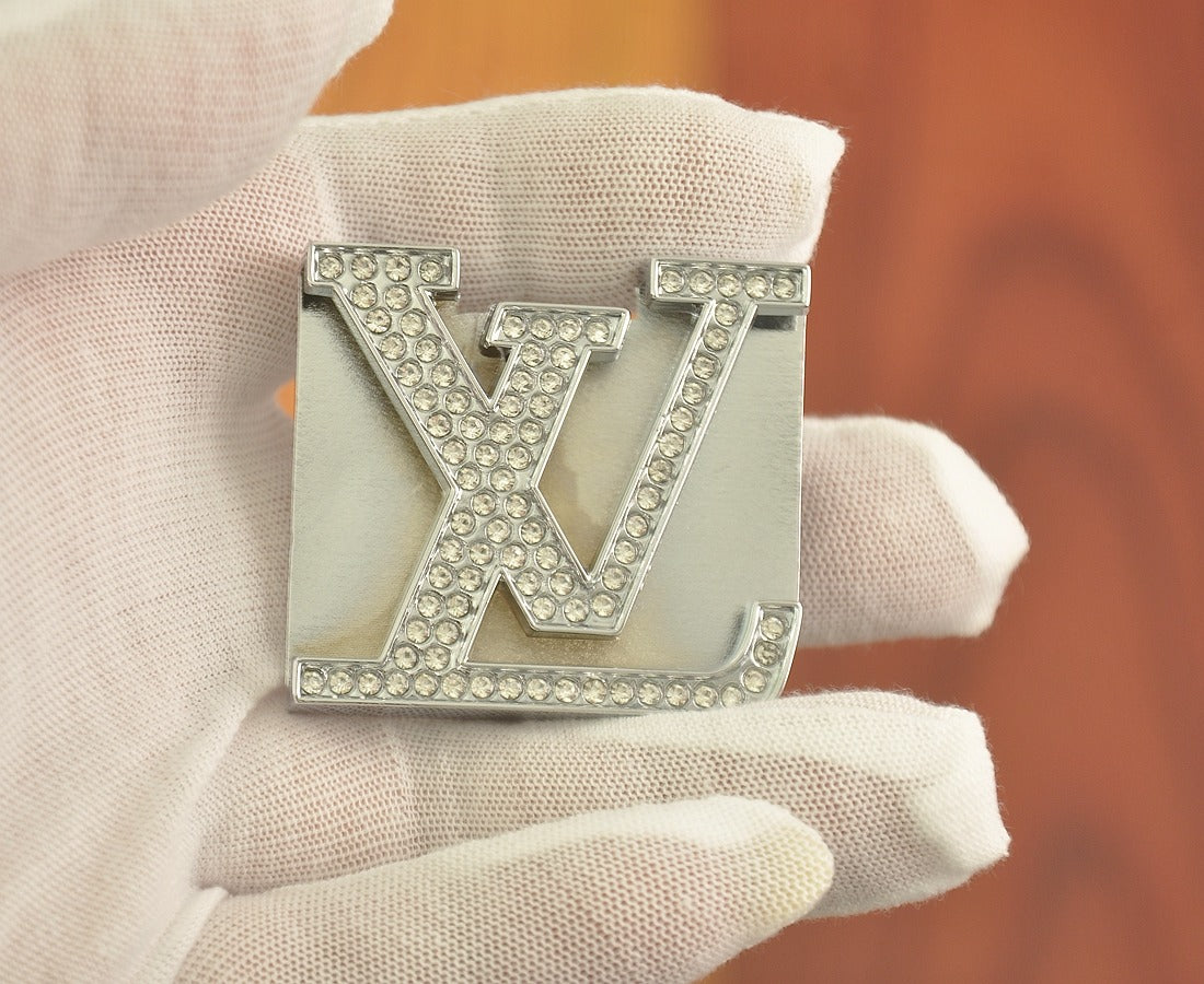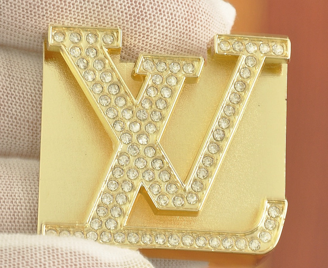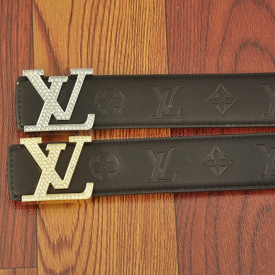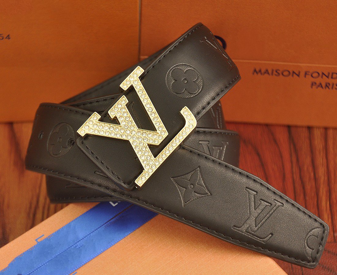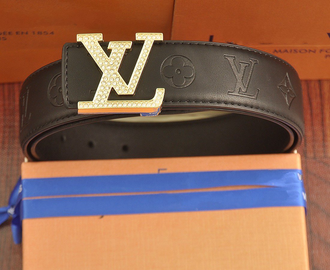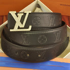 LV BELT SIMPLE DIAMOND BUCKLE BLACK LEATHER 38MM