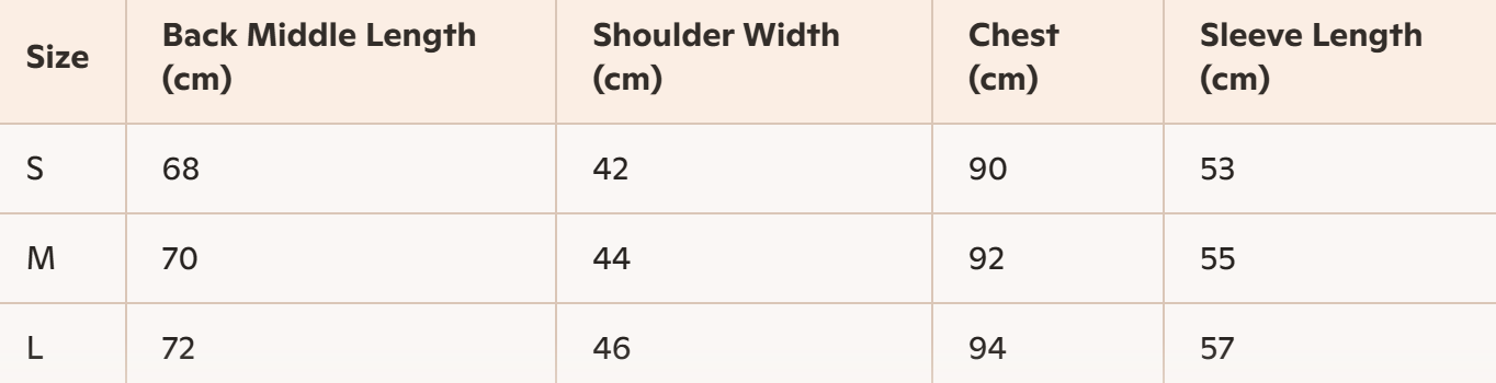 - Size: S, M, L