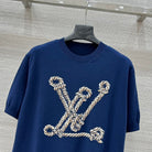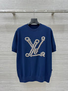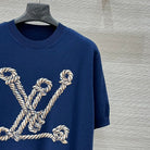 LV 25 Button Rope Jacquard Knitted T-Shirt Blue Wool Polyester