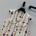 LV 25 Classic Elements Colorful Gemstone Necklace Vest White Cotton
