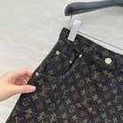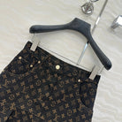 LV 25 Classic Logo Denim Skirt Black Cotton