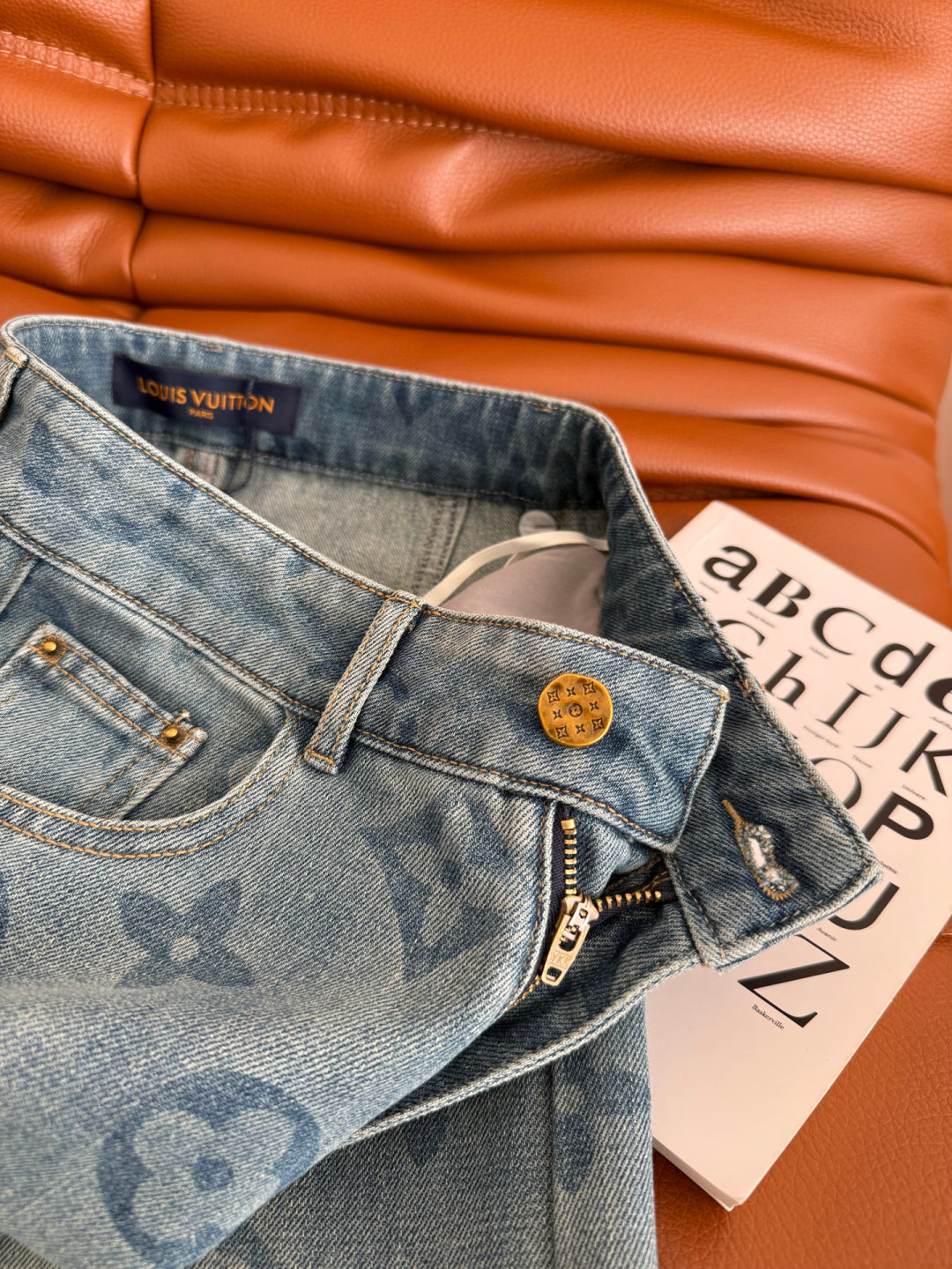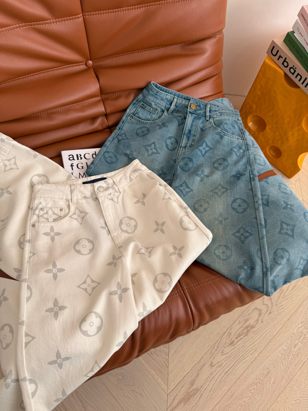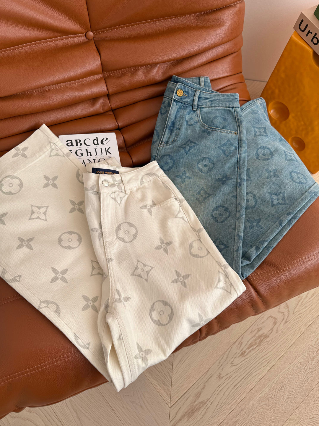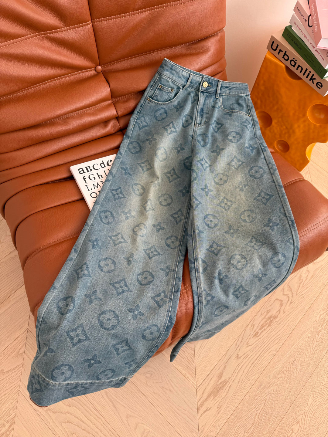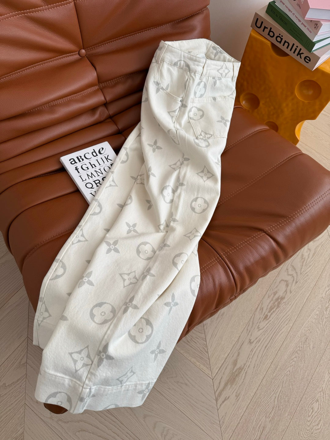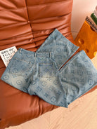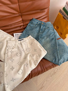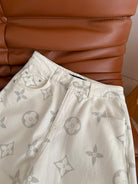 LV 25 Classic Monogram Pattern Wide-Leg Jeans Cotton