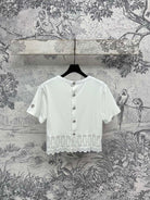 LV 25 Hollow Embroidery Design On The Hem T-Shirt White Cotton