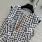 LV 25 Modern Logo Denim Long Vest Dress Black White Poliester