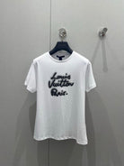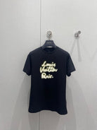LV 25 Neck Short-Sleeved T-shirt Black White Cotton 213651