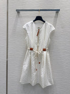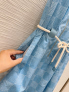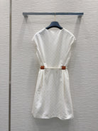 LV 25 Pleated Trendy Square Vest Dress White Blue Poliester