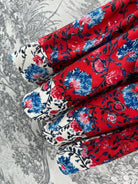LV 25 Retro Floral Pattern Suspender Flower Dress Red Poliester
