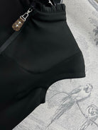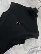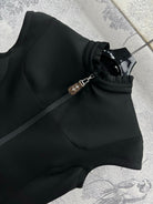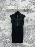 LV 25 Stand-Up Collar Ruffled Edges Dress Black Polyester