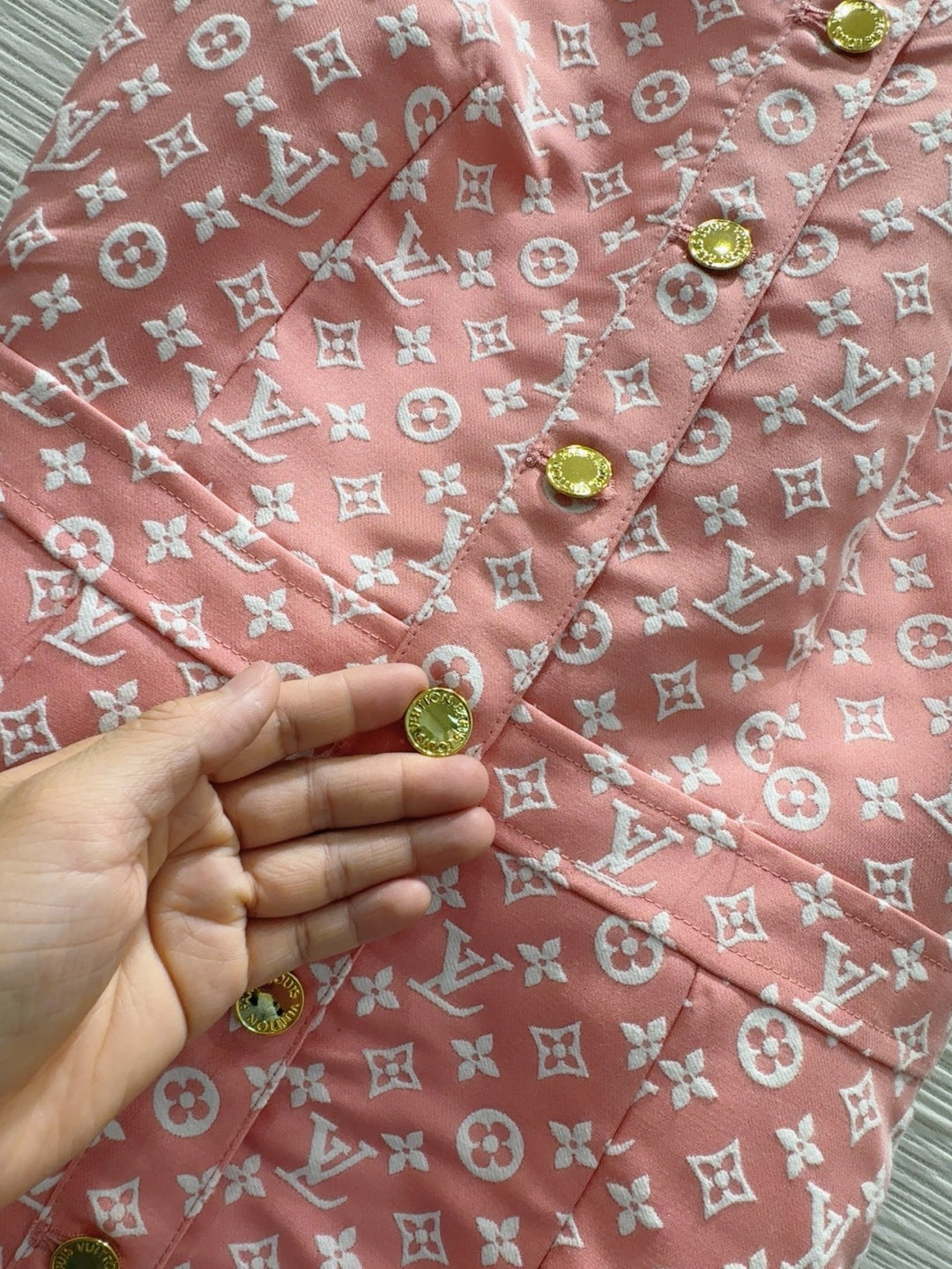 LV 25 White Logo Vest Dress Pink Cotton Wool