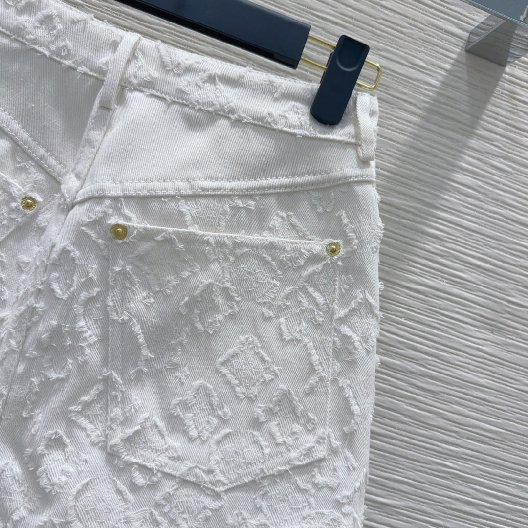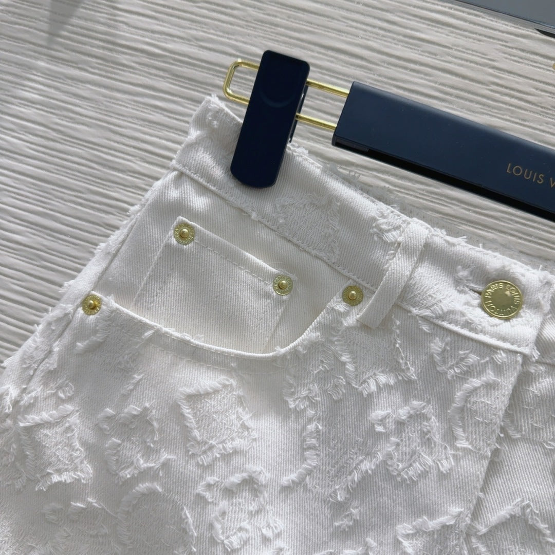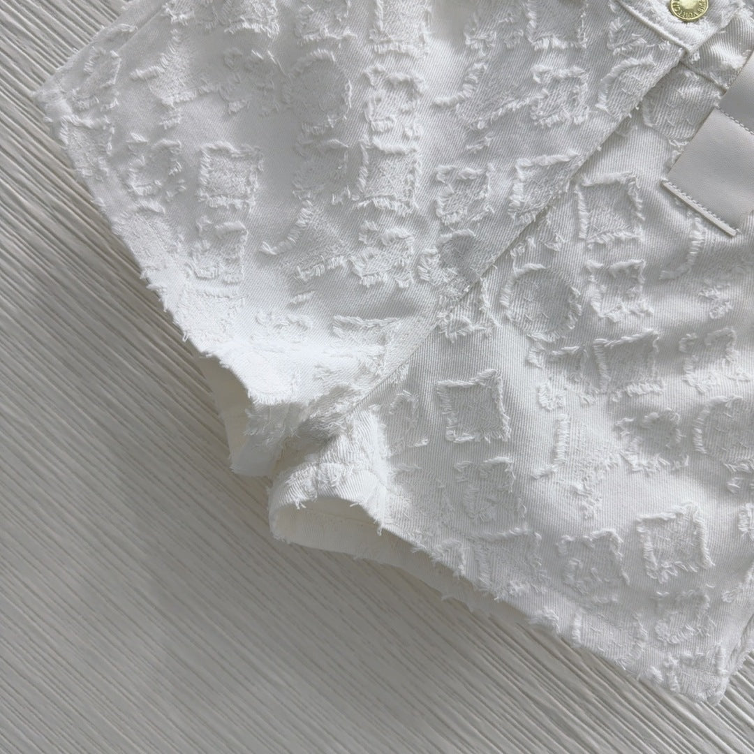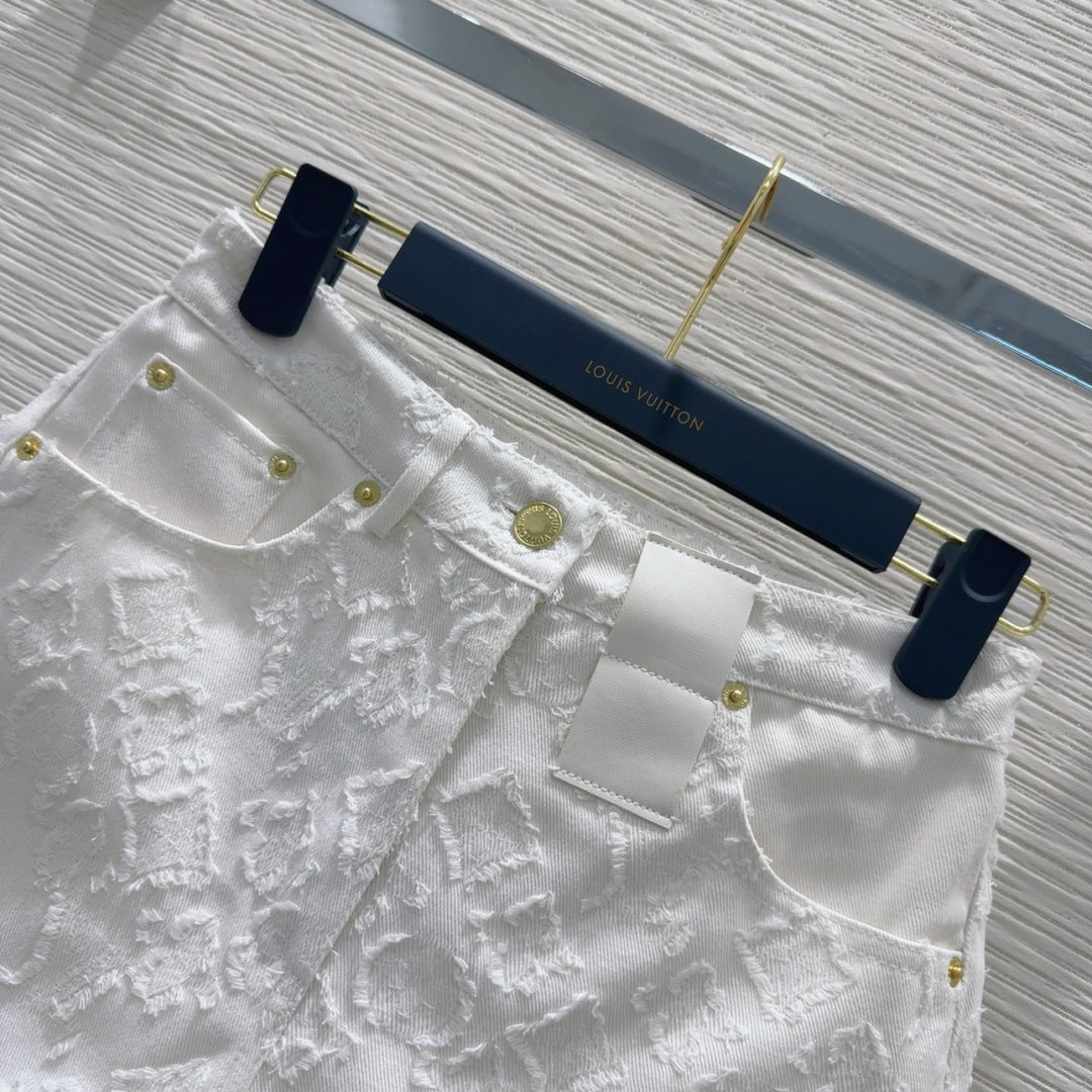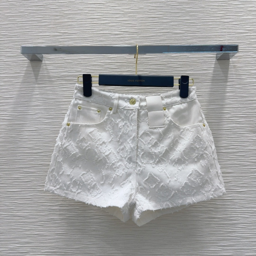 LV 25S Metal Pants Zipper Shorts White Cotton