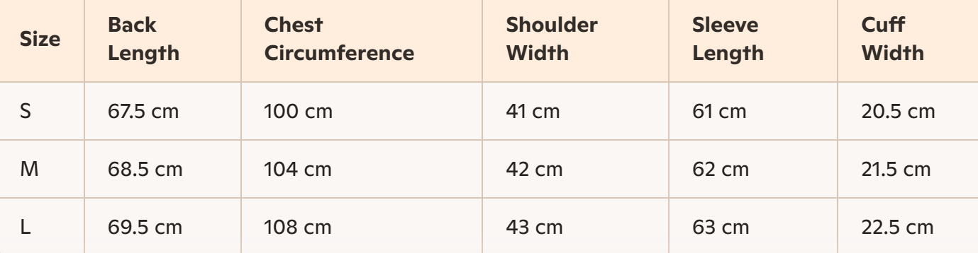 - Size: S, M, L
