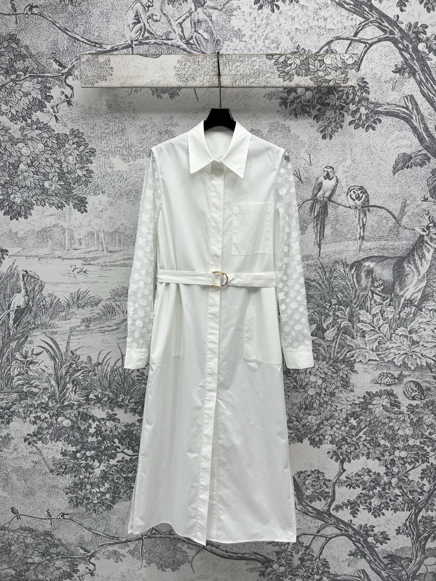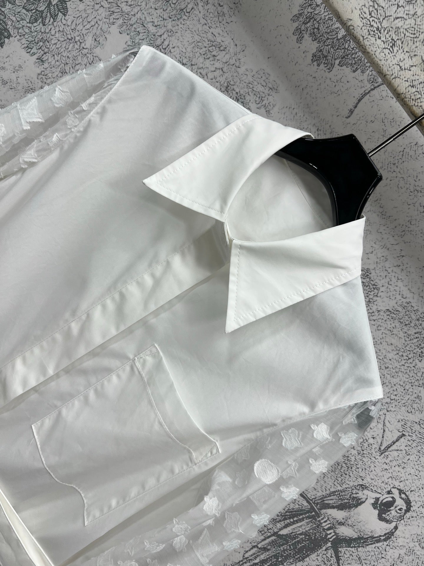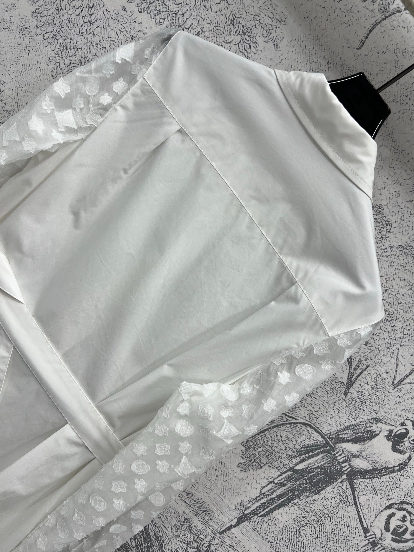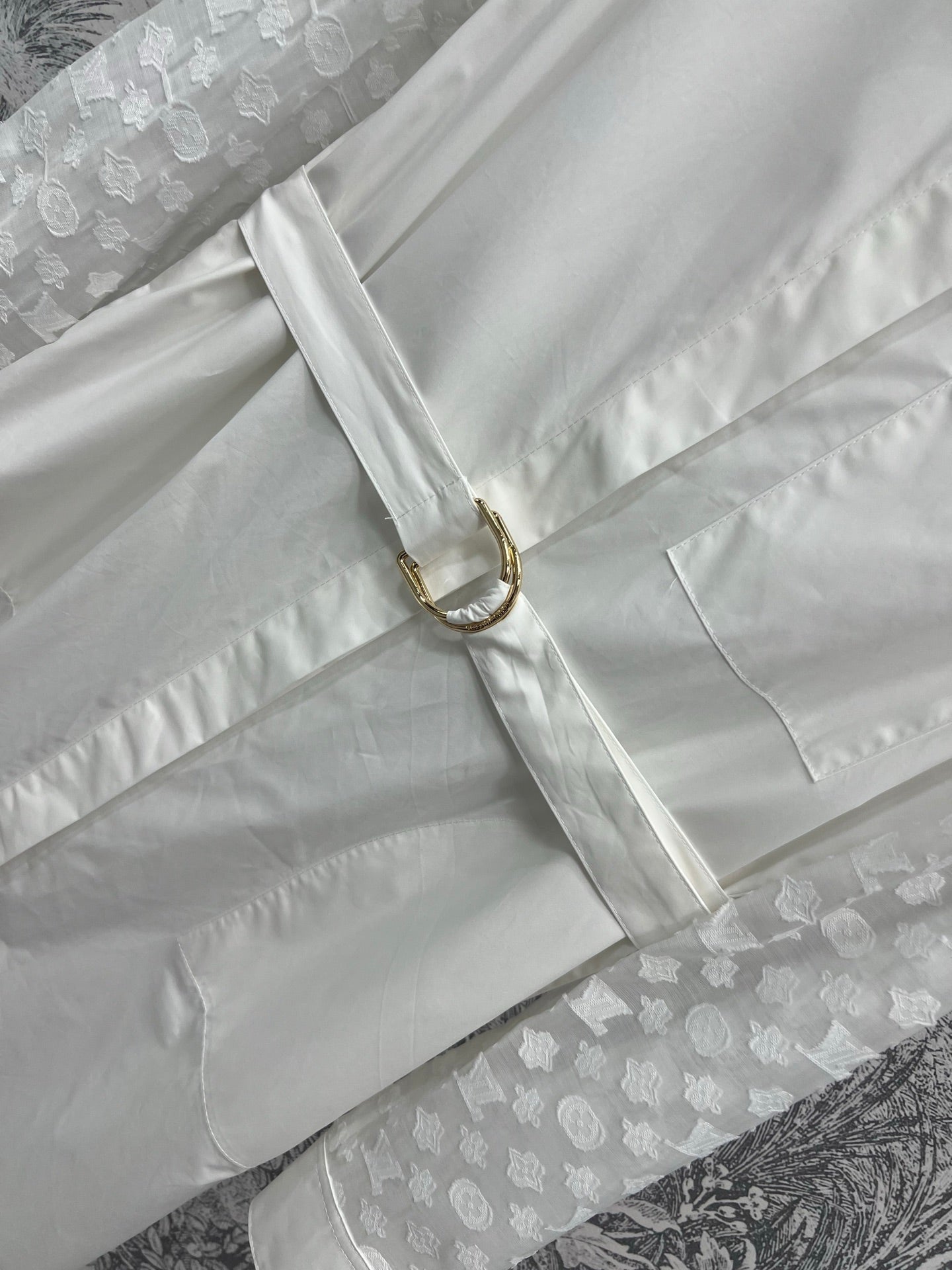 LV 25 Splicing Perspective Jacquard Monogram Sleeve Dress White Cotton