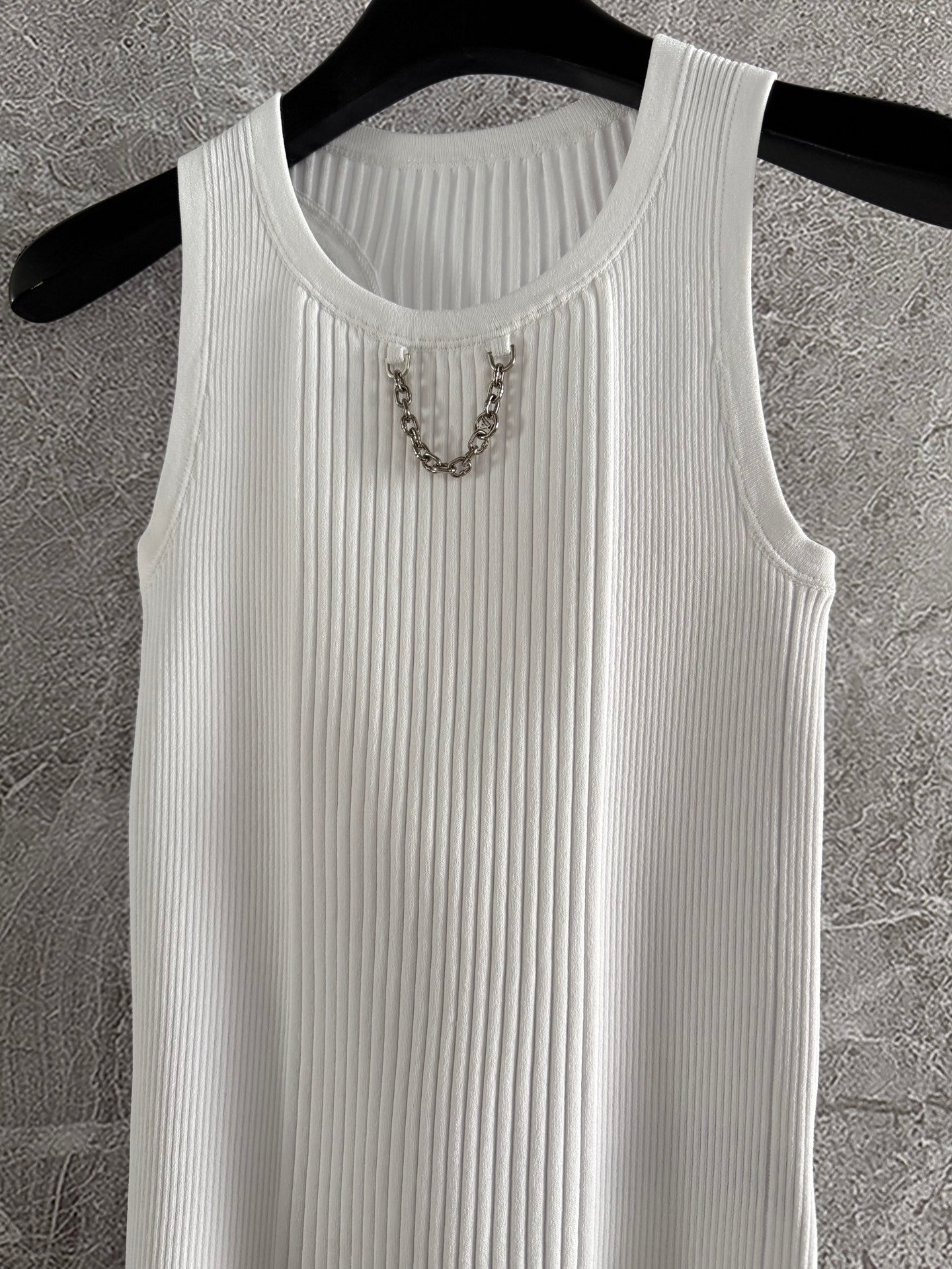 LV Chain Knitted Vest Shirt White Viscose Poliester