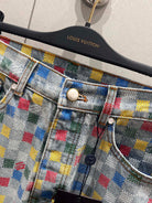 LV Plaid Multicolor Denim Jeans Blue Cotton