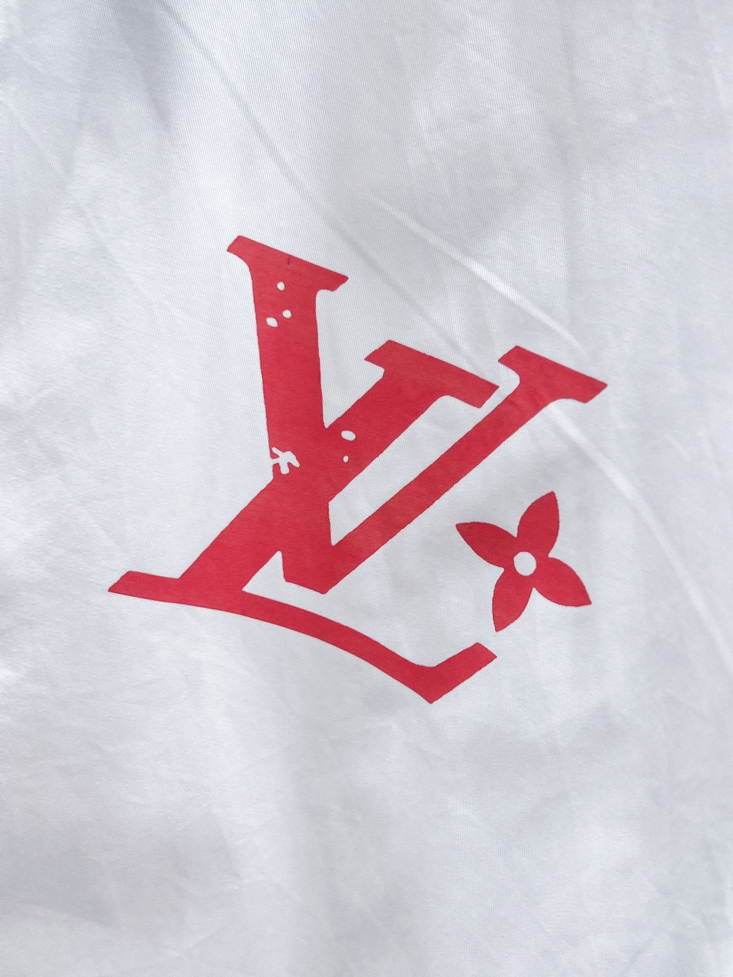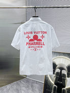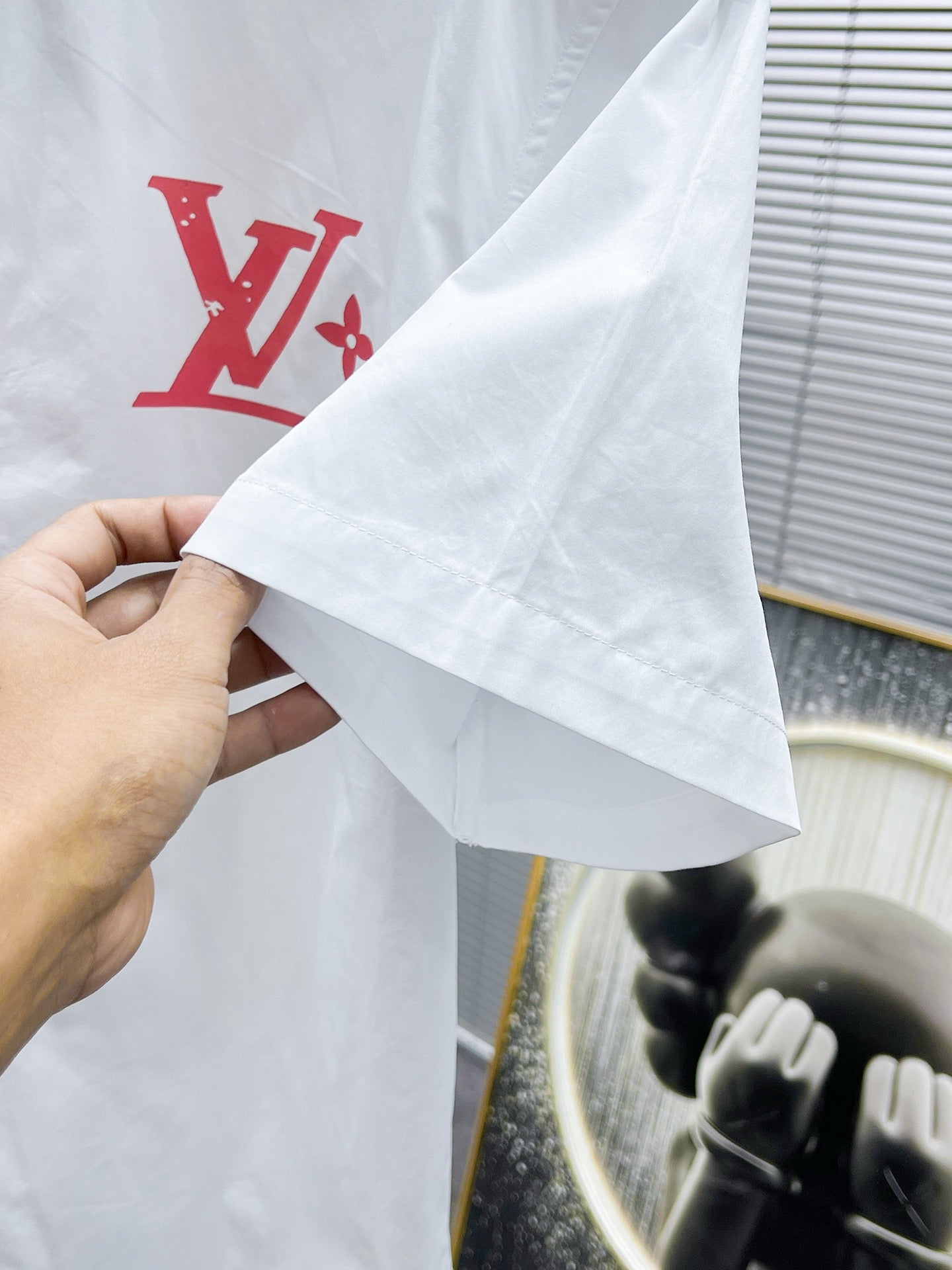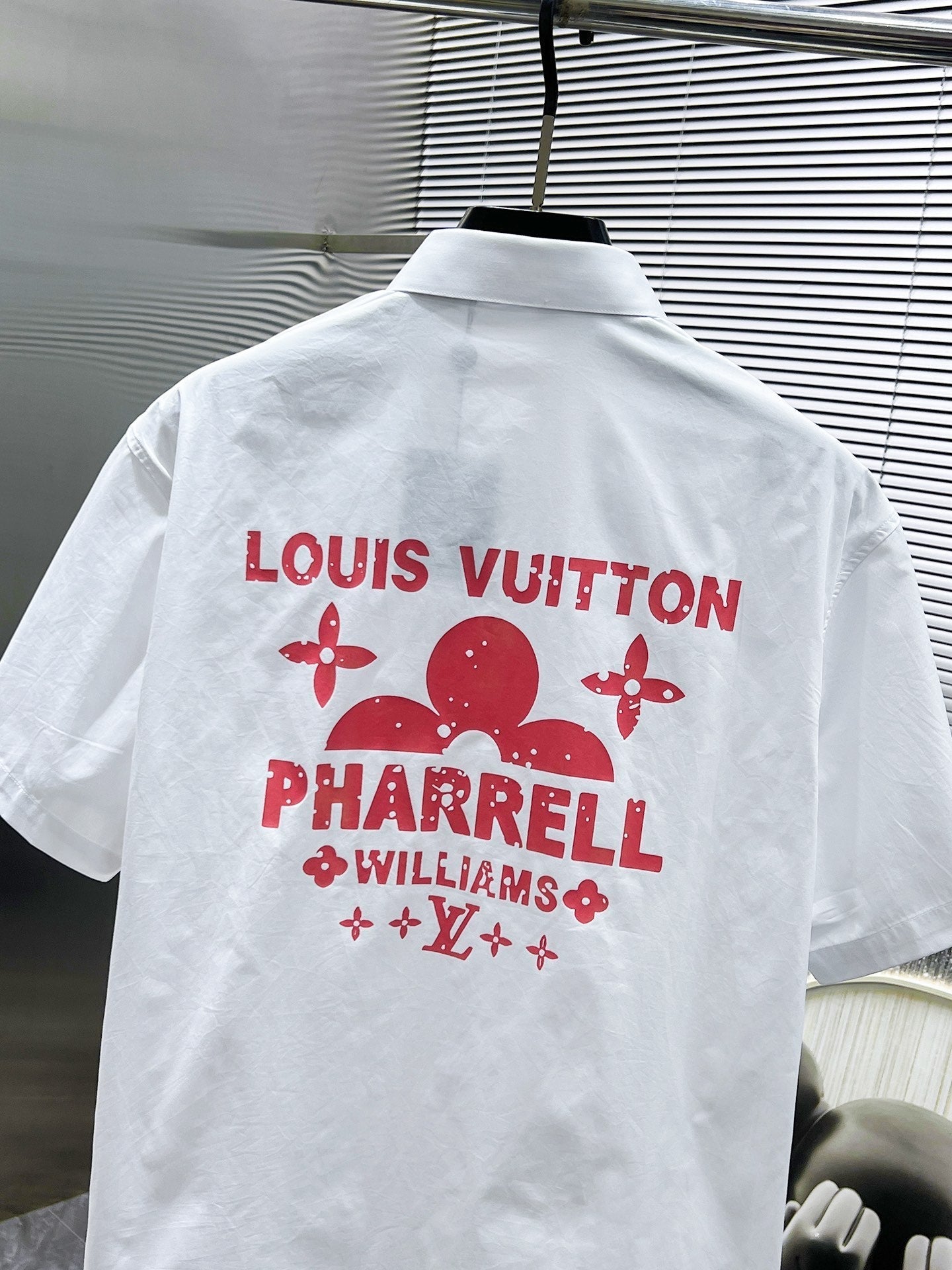 LV SHORT-SLEEVED SHIRT IN WHITE COTTON PINK LOGO 238814