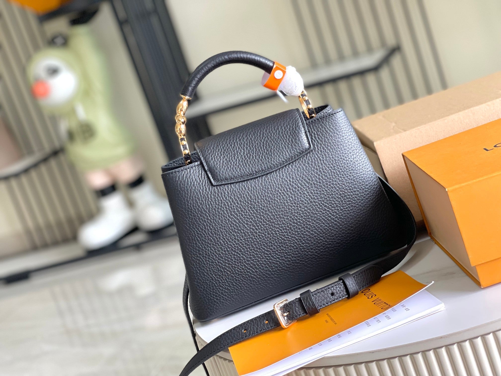 CAPUCINES BB 27 BLACK TAURILLON GOLD HARDWARE