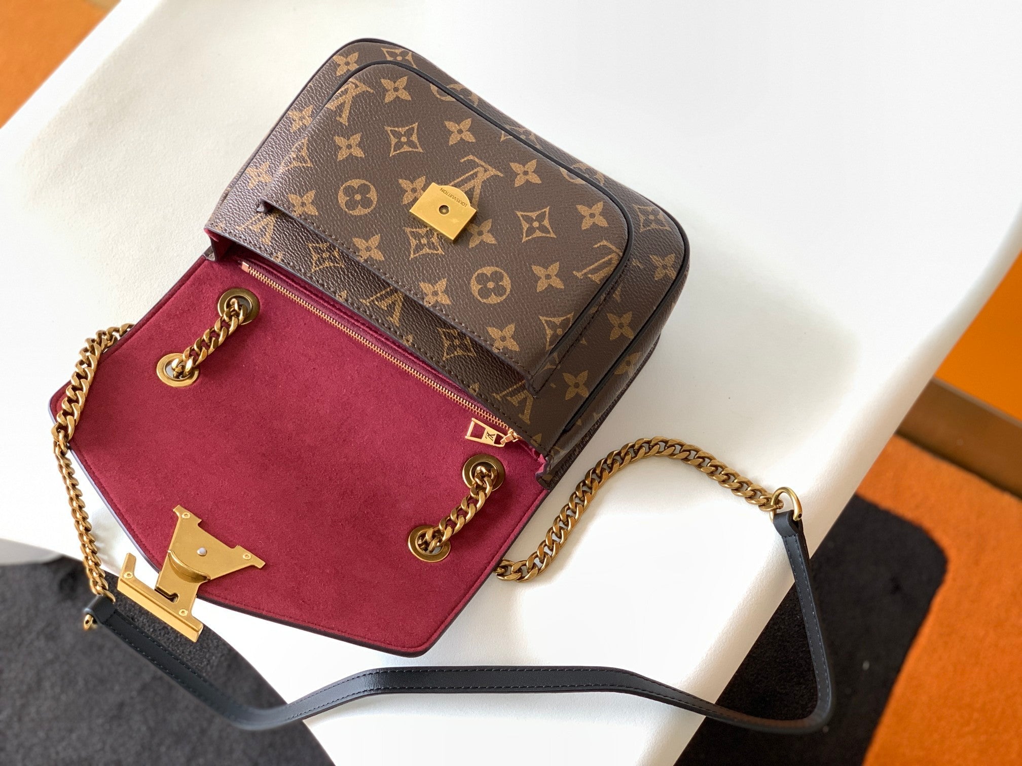 • Aged gold-colour hardware