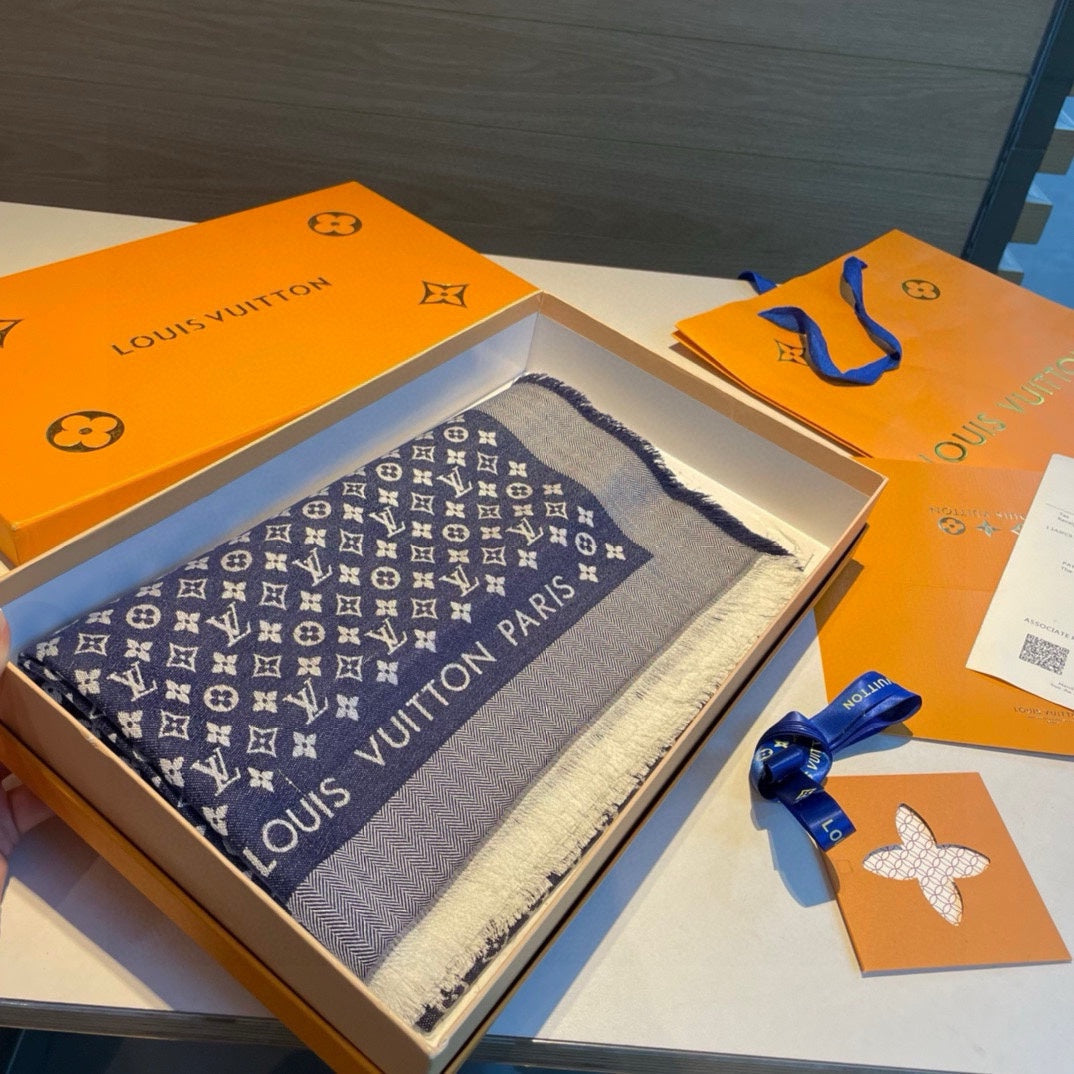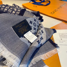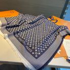 MONOGRAM SHINE SCARF 120 CM IN NAVY BLUE WOOL AND MULBERRY SILK 398196