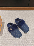 LV Flat Mule Charcoal Blue With Fur Monogram Suede