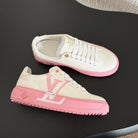 LV Sneakers Time Out Logo Print White Mix Pink Calfskin