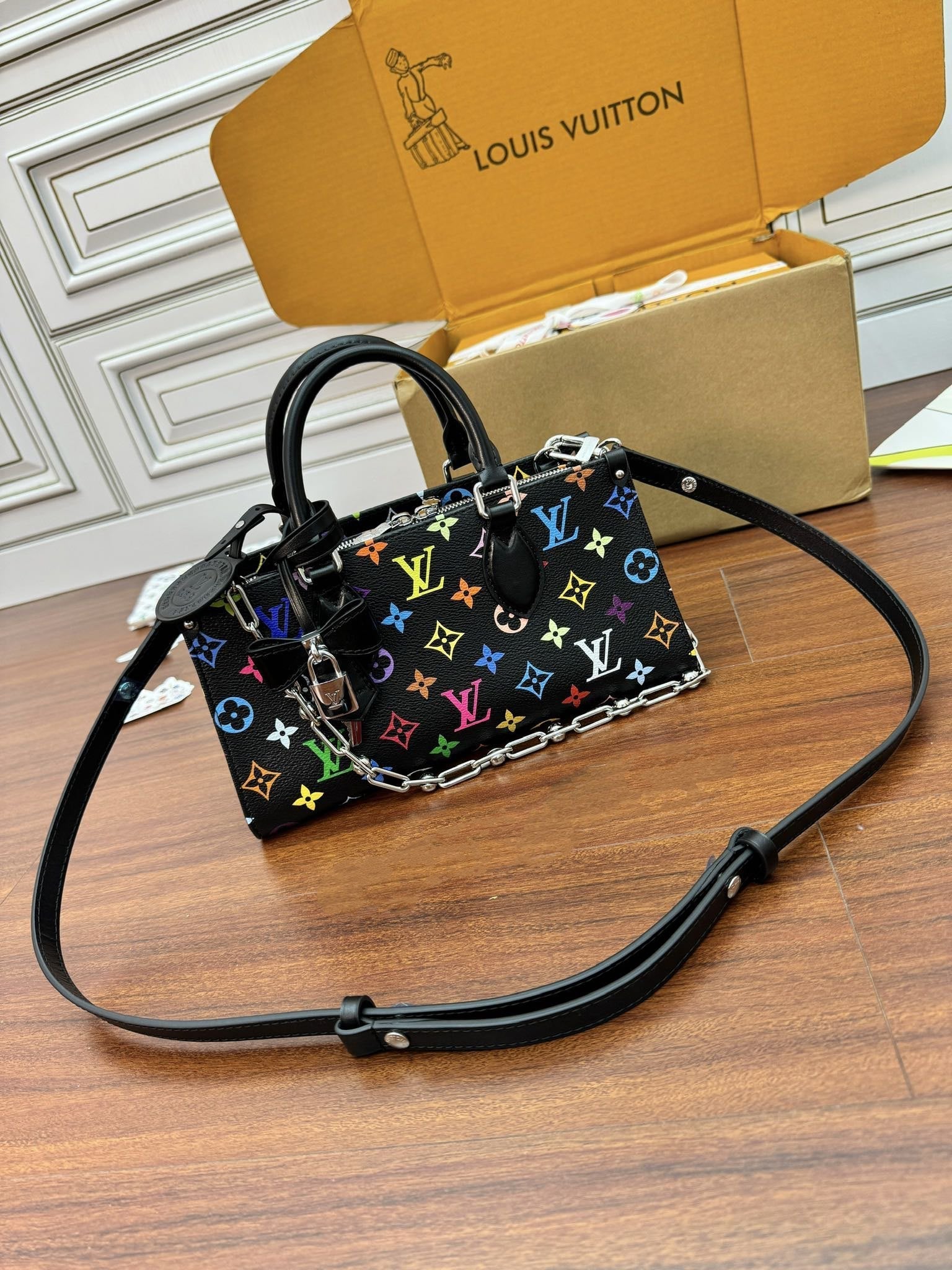 LV OnTheGo East West 25cm Black Multicolore Monogram Canvas 331365