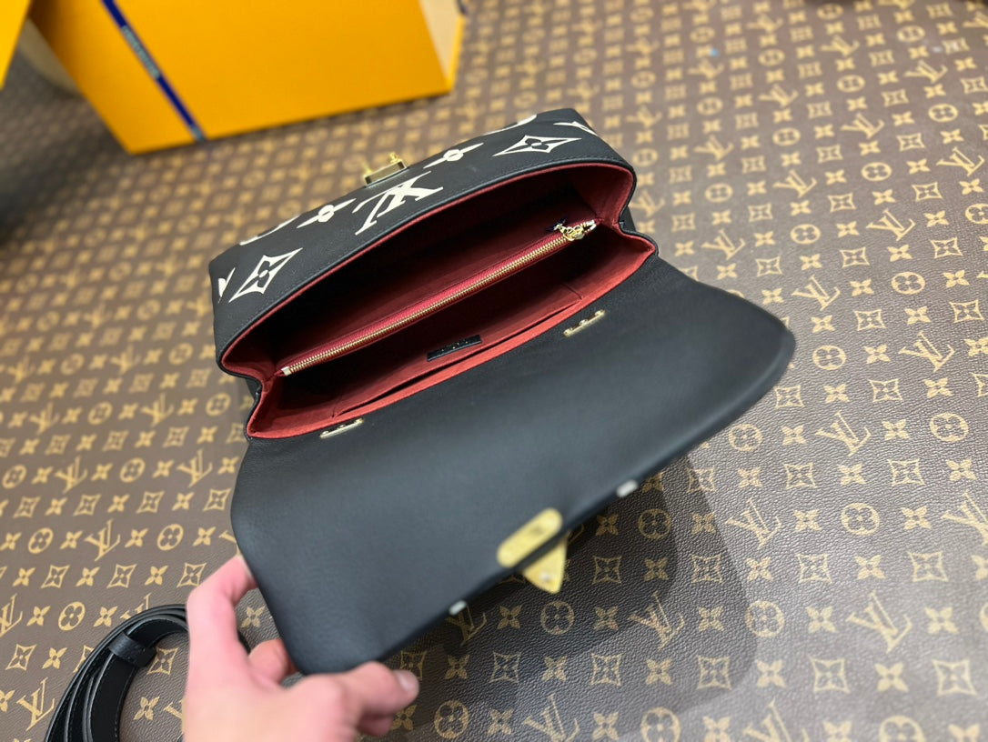 madeleine 30 black white grained embossed calfskin