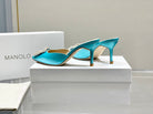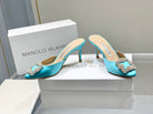 Manolo Buckle Mules 7cm Eletric Blue Silk 208017
