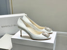 Manolo Snowflake Buckle Pumps White Cowhide 204507