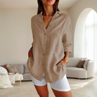 Adoptez une allure raffinée au quotidien avec cette chemise chic, dotée d'un col à revers et d'une coupe plissée. Que ce soit pour une journée au bureau ou une sortie décontractée, elle s'adapte à toutes les occasions avec style. Sa coupe élégante et ses plis délicats apportent une touche de sophistication tout en restant facile à porter, pour un look à la fois chic et confortable.