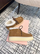 Miu Ankle Boots Cinnamon Brown Fleece Lining Cow Suede