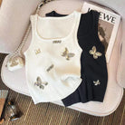 Miu Butterfly Embroidered Ribbed Tank Top