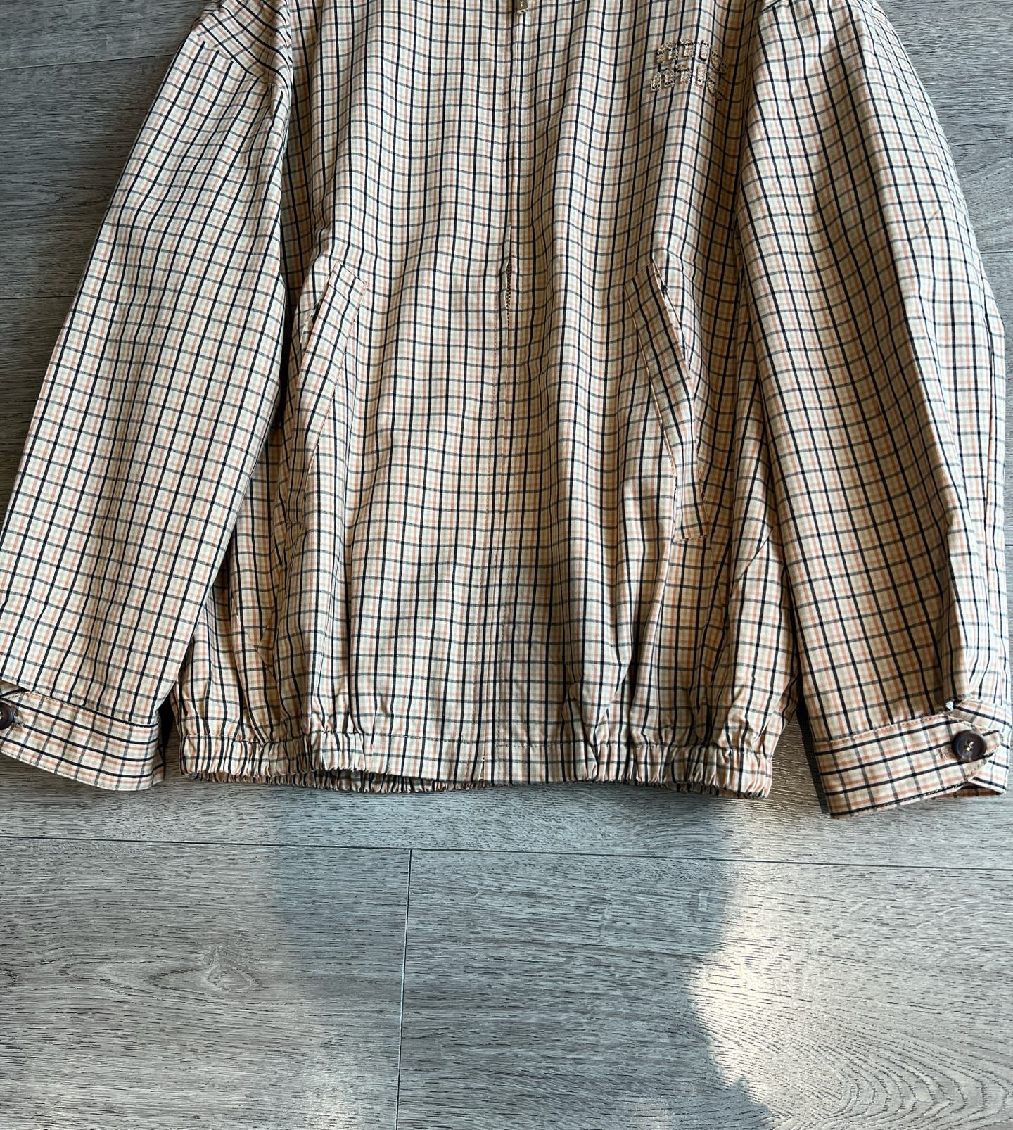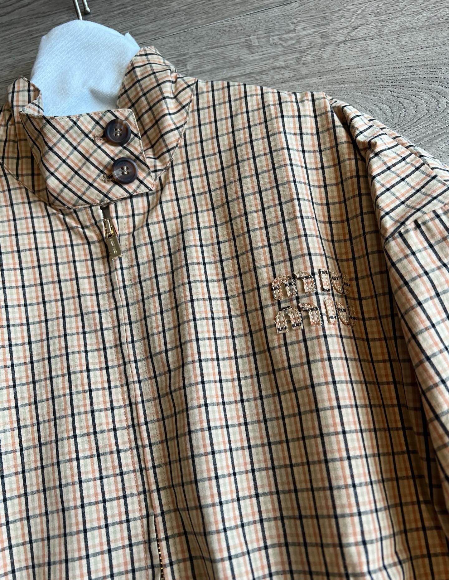 Miu Miu 25 Plaid Stand-up Collar Jacket Katun Pelapis