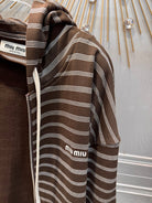 Miu Miu 25 Striped Hooded Sweatshirt Brown White Cotton 70590660