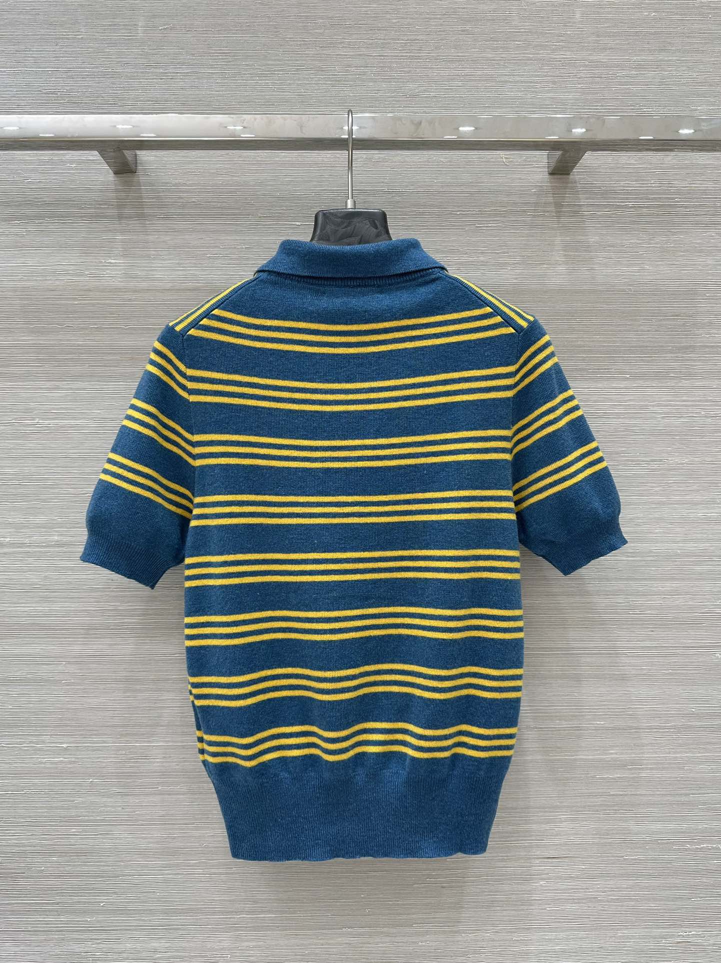 Miu Miu 25 Striped Polo Top Blue Yellow Wool