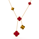 CLOVER TIGER EYE CARNELIAN NECKLACE 6 MOTIF