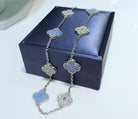 CLOVER 10 MOTIFS CHALCEDONY DIAMONDS SILVER NECKLACE