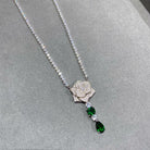 ROSE PEDANT SILVER DIAMOND 3 MOTIF NECKALCE