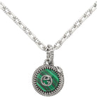 STERLING SILVER NEW DOUBLE G LOGO SERPENT MALACHITE PENDANT NECKLACE