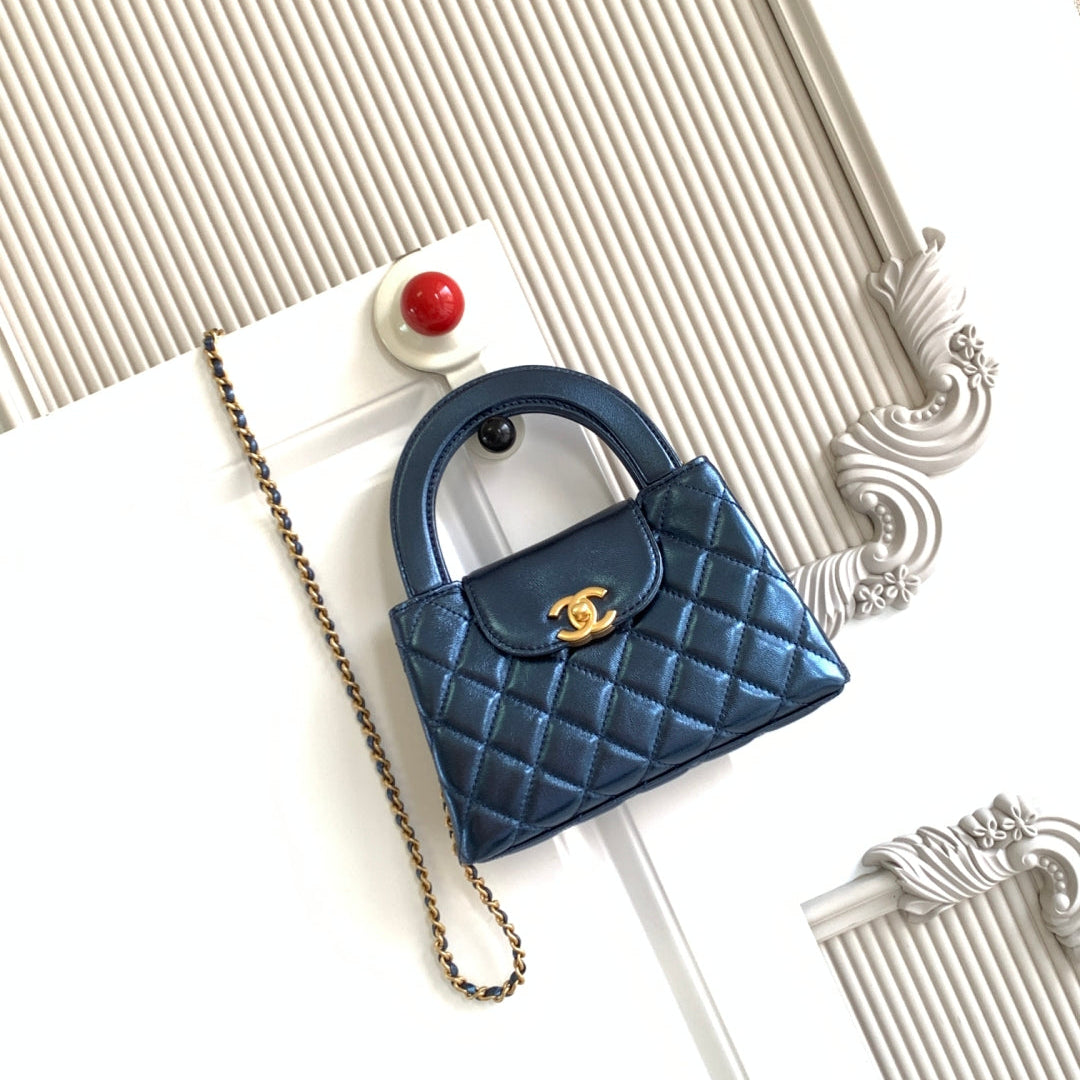 cc 24a nano 19cm kelly shopper bag metallic blue lambskin