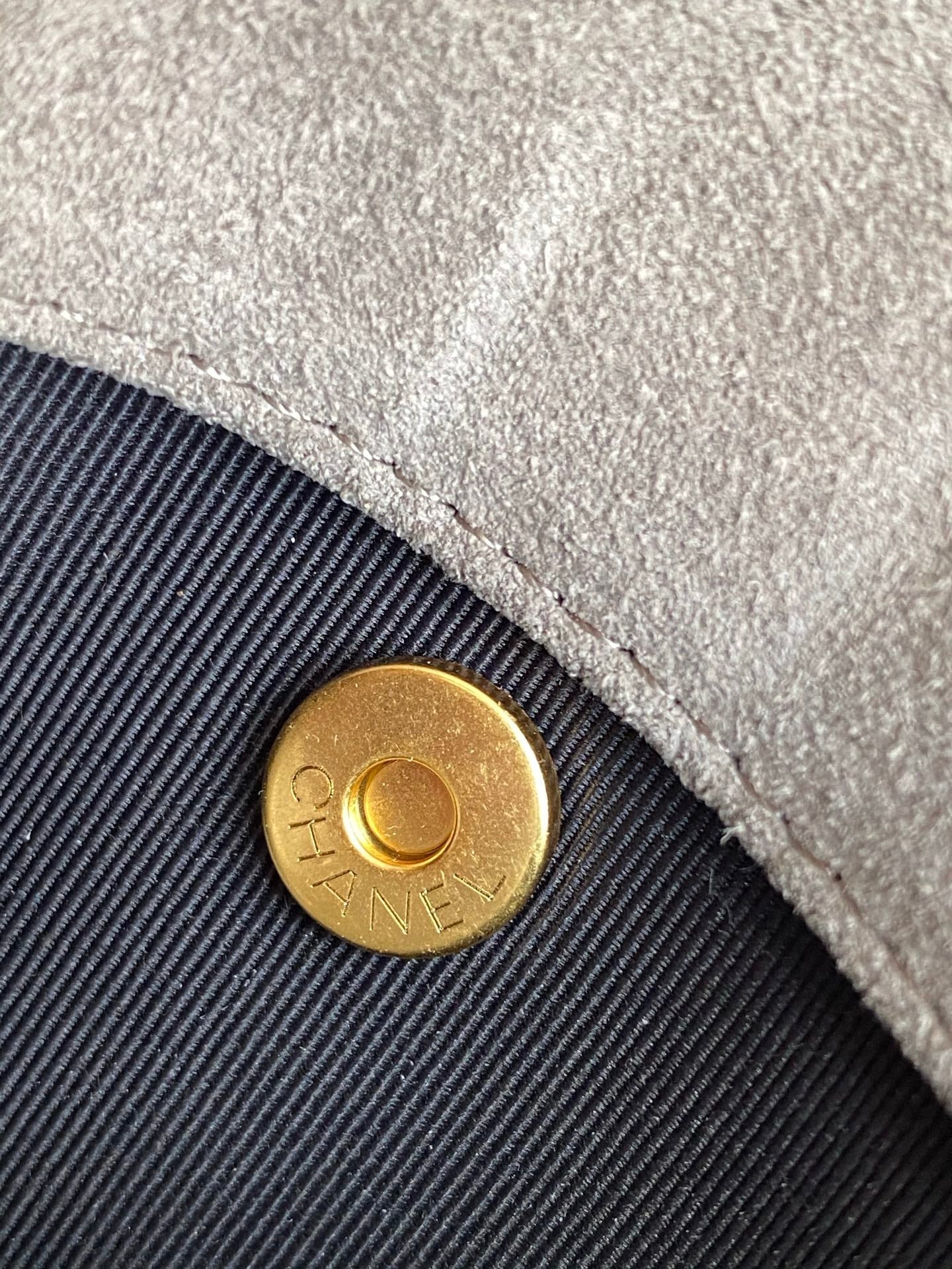 CC 25A Clutch With Chain 18cm Grey Suede Black Calfskin
