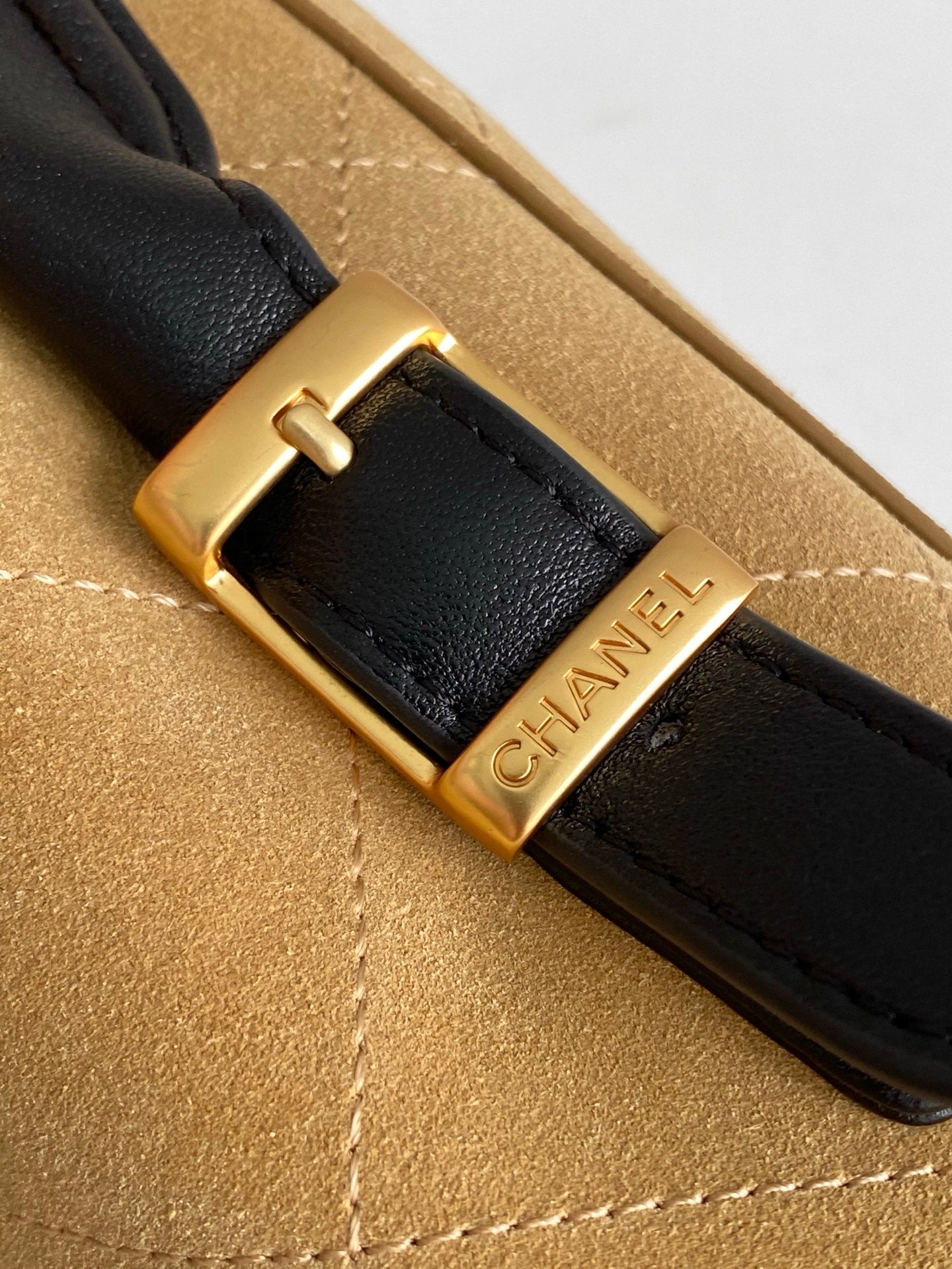CC 25A Flap Bag 29cm Beige Suede Black Calfskin