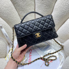 CC 25P Medium Flap Bag 25cm Top Handle Black Calfskin Gold Hardware